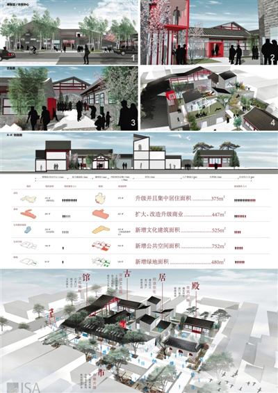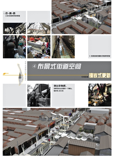 “中鸿设计”提出了镶嵌式更新。类似于对798旧厂房的创造性再利用。把新的零散地嵌入旧的之中,总体上不破坏旧的风貌。