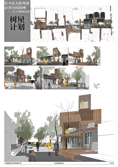 中国建筑设计研究院设计方案中融入新的城市树屋理念,提升街道环境多样性与空间使用率,成为长辛店大街特有的新标志。