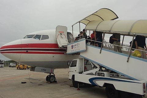 乘客正安全离开飞机。微博截图