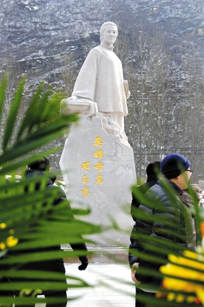 密云县石城镇张家坟村的新村中心,耸立着邓玉芬塑像。