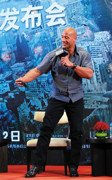 参演的电影《速度与激情7》刚刚刷新了国内电影的票房纪录,由道恩·强森主演的又一部3D灾难电影《末日崩塌》昨日正式上映。继去年的《宙斯之子》后,二度来京宣传电影的强森已经驾轻就熟,他在北京找到了合适的健身房用来维持他的好身材,事后还不忘让工作人员帮他准备好最爱的饺子;他坦言百忙之中一定要去趟长城;在发布会现场,他拿起手机与全场观众自拍了一段长达十几秒的直播小视频,并穿上传统功夫服摆pose,还即兴演唱了《甜蜜蜜》,如今的巨石俨然已经成了半个“中国通”。但,在他年少时也曾经历过挫折,甚至不得不搬去与父母同住。