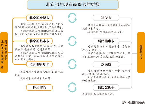 今年率先发放的北京通基本卡,已预留了将承载的其他社会服务功能。同时,其就医方面的功能将比目前北京市民已持有的社保卡、京医通卡等更加“强大”。
