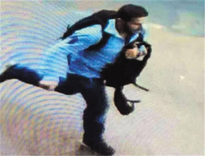 案发当天迪拜大厦监控拍到劫匪嫌疑人。视频截图