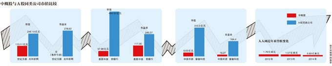 除去百度、网易等中概股游戏概念巨头,与同类中概股的业绩数据和资本“成绩”相比,中国手游的表现尚可。数据显示,2014年,中国手游净利润2.72亿元人民币;中概股游戏公司乐逗游戏母公司创梦天地净利润1.73亿元;淘米网净利480万美元(约人民币2980万);而“第九城市”净利润则亏损1.07亿元。