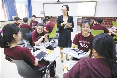 严俊解释,作为一所国际学校,王府并非一味引进国际课程,而是借鉴中西课程的优势,既让学生打好基础,学好中国文化,也注重锻炼学生独立思考、逻辑分析等方面的能力。学校实行的也是双语教学。