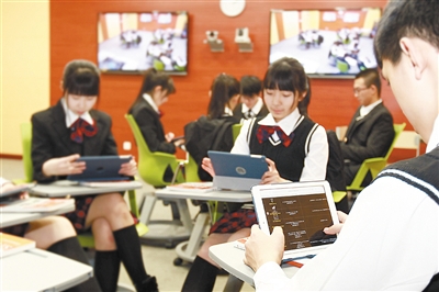 “移动教学其实可以非常实时、高效地解决问题,它可以让课程更生动、活泼,增强分享的效率。”北京王府学校教务处副主任严俊介绍,他们也在研发一些课程APP,让课堂更有趣味性。“除了移动教学,王府学校的教学还有很多特色,比如中西合璧、选择性强、走班上课等等。”
