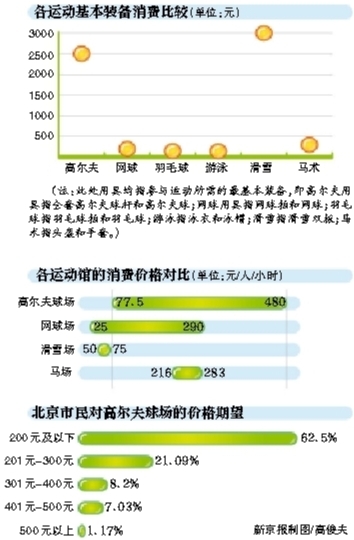 许多人认为,高尔夫运动的消费动辄成千上万,让人遥不可及。但北京林业大学的毕业生文安迪通过全面细致的价格调查发现,在北京,部分运动项目的消费价格要高于高尔夫。
