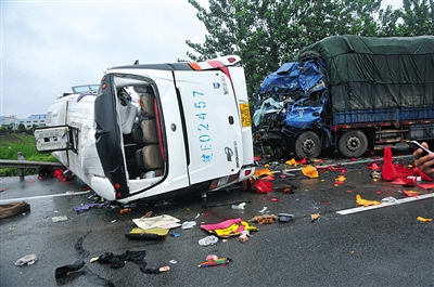 6月26日,客货车相撞事故现场。当天14时50分左右,宁芜高速马芜段发生的客货车相撞事故目前已造成12人遇难,22人受伤,其中1人重伤。