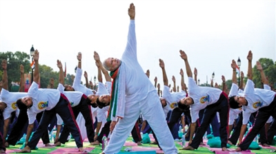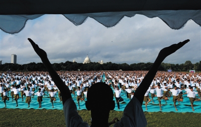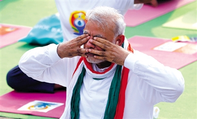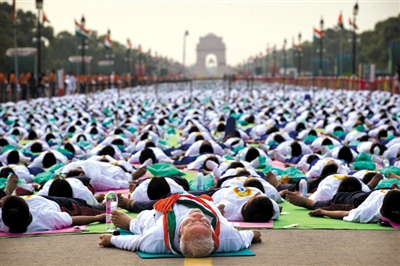 去年9月,莫迪首次在联合国大会发表演讲就呼吁设立“国际瑜伽日”,这一倡议得到包括中国美国在内177个国家支持,去年12月,联合国正式宣布每年6月21日为国际瑜伽日。