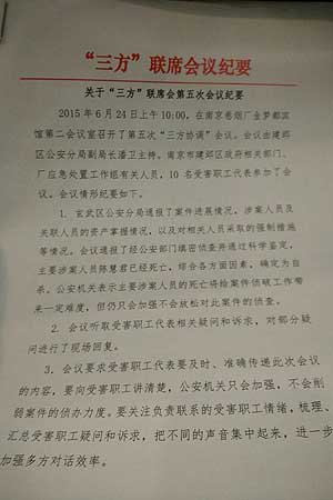 “初步估算,涉案金额为2.776亿元,多的上百万,少的几万元。”上述职工称,这2.776亿元资金的集资时间跨度长达10年,陈慧君以7%的年利息,对外宣称为企业三产集资。据这位职工提供的会议纪要显示,此案涉及到的在岗与退休受害职工数已占到南京卷烟厂职工总数的三分之一。