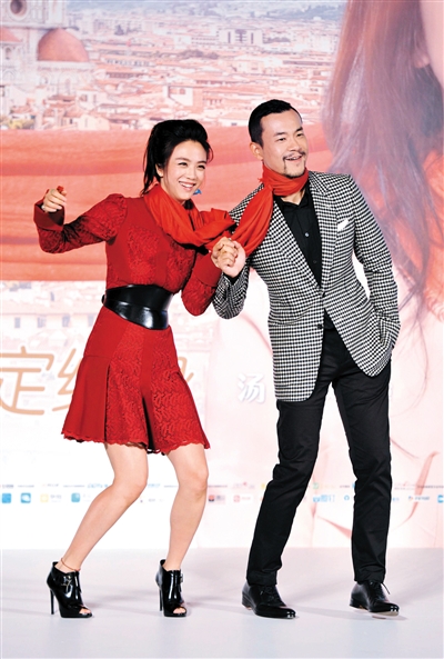 新京报讯 (记者田颖)昨日,由冯小刚监制的浪漫爱情喜剧《命中注定》在京举行新闻发布会,导演张皓携主演汤唯、廖凡、苏岩、刘韬亮相活动。现场,汤唯和廖凡不但跳起了片中的定情舞,还模仿此前的数款海报,用围巾、头纱等道具演绎了“一围定情”“一花定情”等多个甜蜜场景,并撑起红伞呼应7月8日晚冯小刚在微博诠释的谐音“撑散户”主题,预祝广大股民早日迎来股市反弹。据悉,该片即将于7月24日在全国公映。