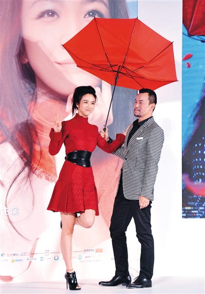 汤唯和廖凡在现场各种花式秀恩爱,还撑起红伞,谐音撑散户,为股民加油。新京报记者 郭延冰 摄