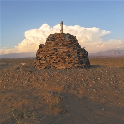 荒漠草原上和硕特部蒙古的敖包,远处是贺兰山。王身敦 摄