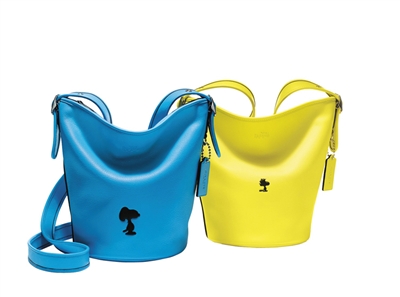 Coach x Peanuts限量系列不同尺寸的挎包、手提袋和背包印有Snoopy图案和他的好伙伴Woodstock,选取Coach独特的手套铬鞣皮革,并采用压花技艺,黑白配色和Woodstock明黄色更时尚。