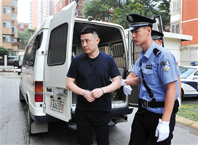 张林被带到朝阳法院。昨日,张林被认定容留他人吸毒罪,一审获刑10个月。 通讯员 曹璐 摄