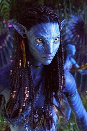《阿凡达》中的故事发生在2154年,是在一颗叫潘多拉的星球上。那里的纳威人身高三米,通体蓝色发光带有花纹,身后还有条尾巴。纳美人全身都没有毛发,头上长长的像头发一样的东西其实是他们的露出体外的神经系统,以与灵魂树的枝条和女妖翼兽的触角对接实现沟通。