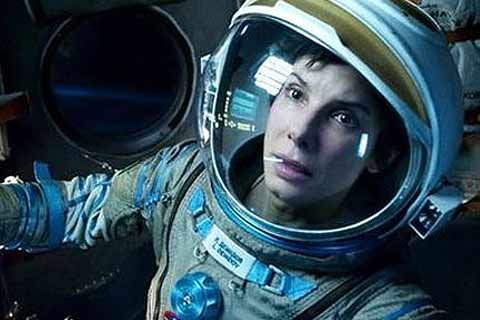 和《阿波罗13号》不同,《地心引力》则是一个完全虚构的故事。在探索者号航天飞机上的两名男宇航员和一个女宇航员出舱进行哈勃望远镜维修时,遭遇太空碎片袭击导致飞船发生严重事故。由于其他同行全部丧生,只有女宇航员一个人在残酷的宇宙环境中,通过自己的毅力和镇定,最终驾驶神州飞船返回了地球。