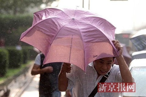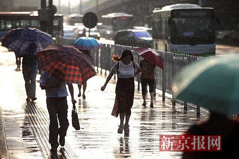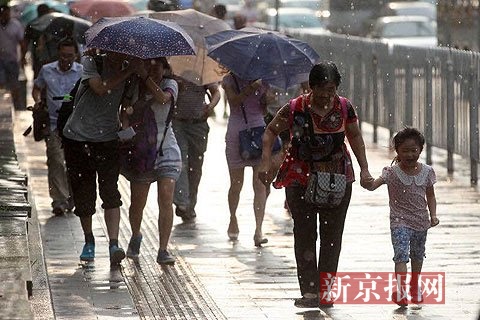 新京报快讯(记者薛珺)8月11日傍晚5点多,大望路,市民们走在突然下起的太阳雨中,也有不少没带雨具的路人在报摊亭内躲雨。