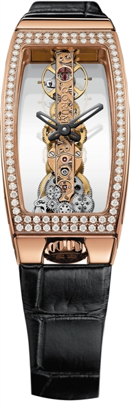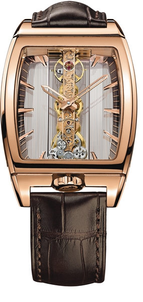 通过透视表镜,昆仑表最为经典的金桥机芯正反面都能一览无余,颇有“鹊桥相会”的意思。