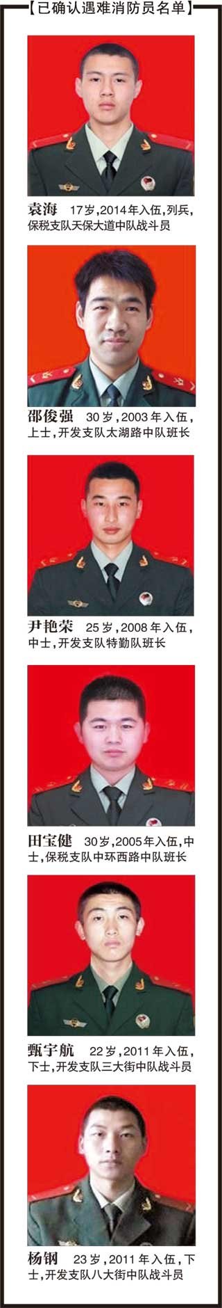 另外五个名字是:尹艳荣、甄宇航、邵俊强(开发区消防支队)、田宝健、袁海(保税区公安消防支队)。