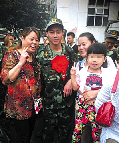 去年9月18日,姐姐袁媛亲手给他戴上大红花,目送一身军装的他离去。“穿起军装超帅气的弟弟,等两年后回来更帅气。”姐姐发了朋友圈。