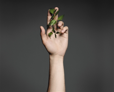 Ermenegildo Zegna 2015/16秋冬Couture系列广告宣传大片,手和小型绿色植物图案强调了生态一致性,并传达了与服饰同样的“环保”意识。