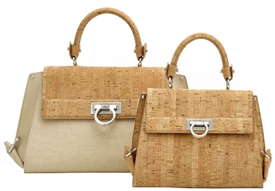 该系列配饰以生态环保的方式重新演绎了Salvatore Ferragamo的经典作品,比如标志性的Rainbow凉鞋采用条纹状软木楔跟和浅色织物鞋面;Sofia手提包系列则采用环保合成材料、软木和天然织物,搭配金属细节,该系列还有一款小号包款完全采用100%软木材料制作。