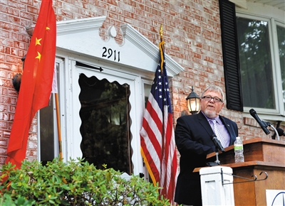 美国马斯卡廷市市长霍普金斯17日宣布,将习近平30年前住过的一所民宅命名为“中美友谊屋”。新华社记者 鲍丹丹 摄