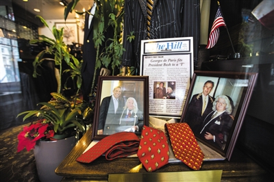 14日,华盛顿,德帕里斯的裁缝店里展示其与历任美国总统的合影。