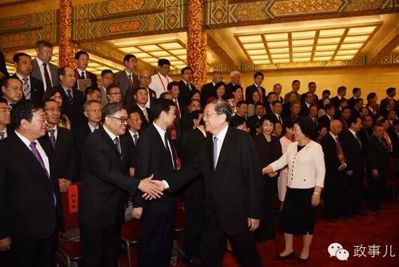2015年9月21日,第九届理事大会上,会长俞正声与理事握手。