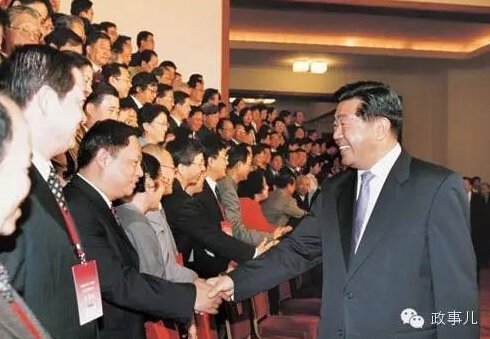 2004年9月,第七届理事大会上,会长贾庆林与理事握手。
