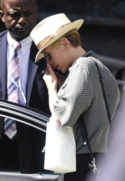 “黑寡妇”斯嘉丽近日外出,低头掩嘴神秘通话。