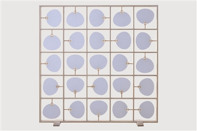 轻扇屏风的设计灵感来源于典雅的传统美学,团扇以其柔和优雅的形态成为了集中体现中国古代诗意审美的文化符号。该设计作为空间中的隔断,利用了团扇半透明的遮光特性,在若隐若现中传达出东方的含蓄之美。