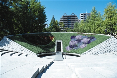 位于东京都慰灵堂旁的横纲町公园内,东京空袭遇难者追悼及平和祈念碑。外侧花坛的图样随着四季变化,图画均来自东京地区孩子们。新京报记者 卢美慧 摄