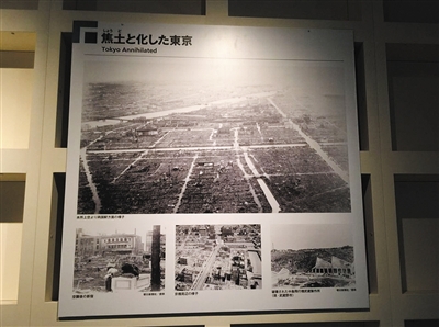 日本江户东京博物馆内展出的一张摄影作品,展现了东京大轰炸后一片焦土的景象。新京报记者 卢美慧 摄