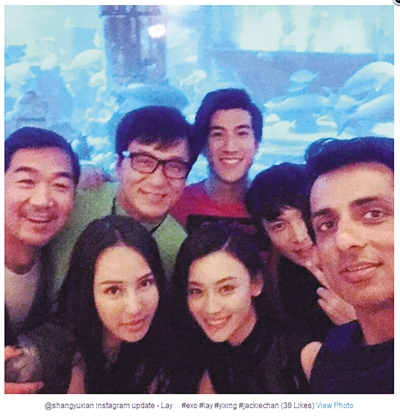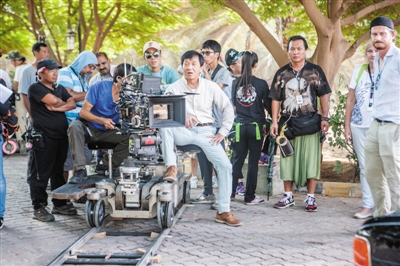 成龙在《功夫瑜伽》拍摄现场,剧组工作人员完全是“多国部队”。
