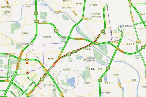 实时路况信息显示,截止12时20分,机场高速双向行驶均较为拥堵。网站截图