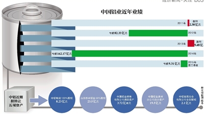 这并非中国铝业首次甩卖资产。近年来,中国铝业因其惊人的亏损额而被冠以“亏损王”之称。2014年年报显示,中铝当年净亏损达到162亿元,刷新了A股上市公司亏损纪录。