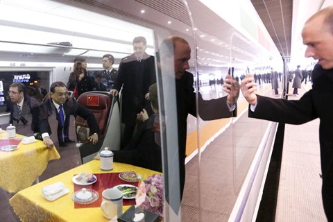 李克强总理就是这么做的。11月26日,在苏州开往上海的高铁上,他不仅向中东欧16国领导人展示中国高铁的高速、平稳,还在车厢里与拉脱维亚总理斯特劳尤马谈起了“波罗的海高铁”项目。