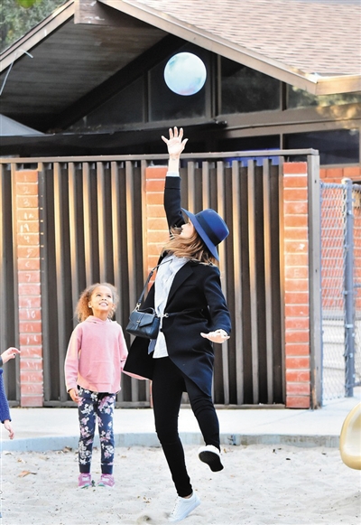 11月30日,美国加州,杰西卡·阿尔芭现身街头,童心未泯与孩子们玩气球。