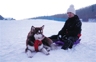 王思聪近日更新微博带自家狗去滑雪,“雪橇犬国民小公举王可可给你拉雪橇,一万一步”。