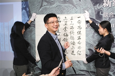 饰演正考父的京剧老生名家杜镇杰昨日在发布会现场写下了31字的鼎铭。