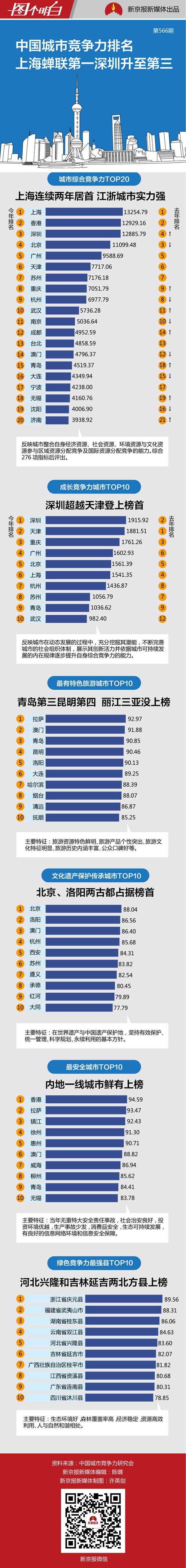 中国城市竞争力排名 上海蝉联第一深圳升至第三