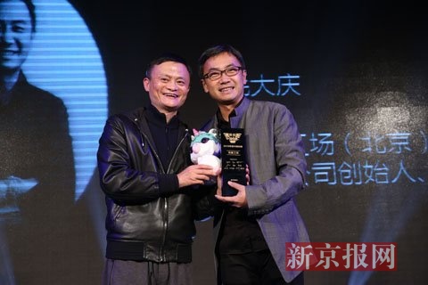 马云为毛大庆颁奖。新京报记者 吴江 摄