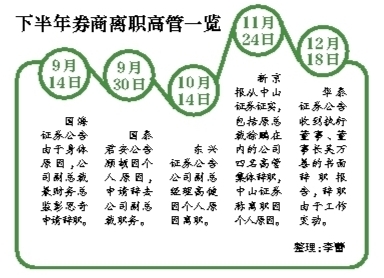 新京报讯 (记者李蕾)华泰证券12月18日发布公告称,公司董事会收到执行董事、董事长吴万善的书面辞职报告,由于工作变动,吴万善提请辞去董事长的职务。今年下半年以来,有多家证券公司高管离职。