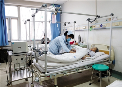 双桥医院骨科病房护士在护理病人。 本版摄影/新京报记者 王远征