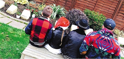 贝嫂在圣诞节时晒照,不同以往,三儿一女只露背影,并排坐在爷爷的墓碑前。