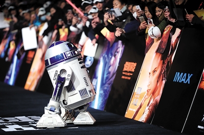 12月27日,上海,《星球大战7》首映礼上,机器人R2-D2与影迷互动。