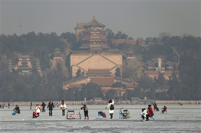 新京报讯 昨日,北京市内开放七大冰场,包括颐和园、玉渊潭、陶然亭,什刹海等。其中,颐和园冰场占地70万平方米,成为市区内最大规模冰场。