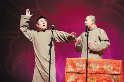 语言类节目一向是春晚的重头戏。图为1月23日,苗阜、王声在陕西青曲社“盛世迎春大典”演出。
